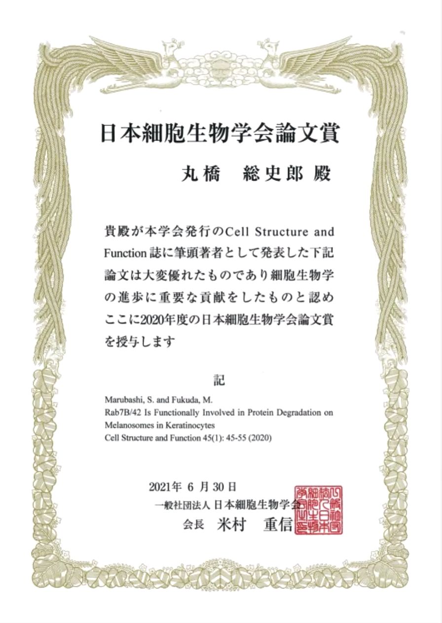 23-8) Tokuda, K., Lu, S.-L., Zhang, Z., Kato, Y., Chen, S., Noda, K., Hirose, K., Usami, Y., Uzawa, N., Murakami, S., Toyosawa, S., Fukuda, M., Sun-Wada, G.-H., Wada, Y. and Noda T. (2023) Rab32 and Rab38 maintain bone homeostasis by regulating intracellular traffic in osteoclasts. Cell Struct. Funct., 48, 223–239 [PubMed]