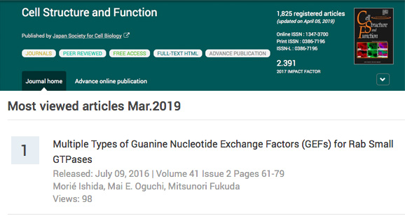 41. Ishida, M., Oguchi, M. E. and Fukuda, M. (2016) Multiple types of guanine nucleotide exchange factors (GEFs) for Rab small GTPases. Cell Struct. Funct. 41, 61-79 [PubMed] (•\ކ‚ÉÌ—p‚³‚ê‚Ü‚µ‚½I)mƒŠƒ“ƒNn